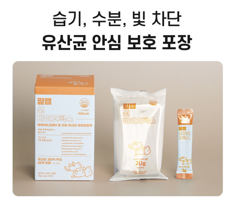 포장 방법은 통에서 퍼서 급여하는 방법도 있지만 유산균이 산소나 습기에 노출되면 유익균이 사멸된다고 하니 개별포장방법이 더 좋을거 같다.