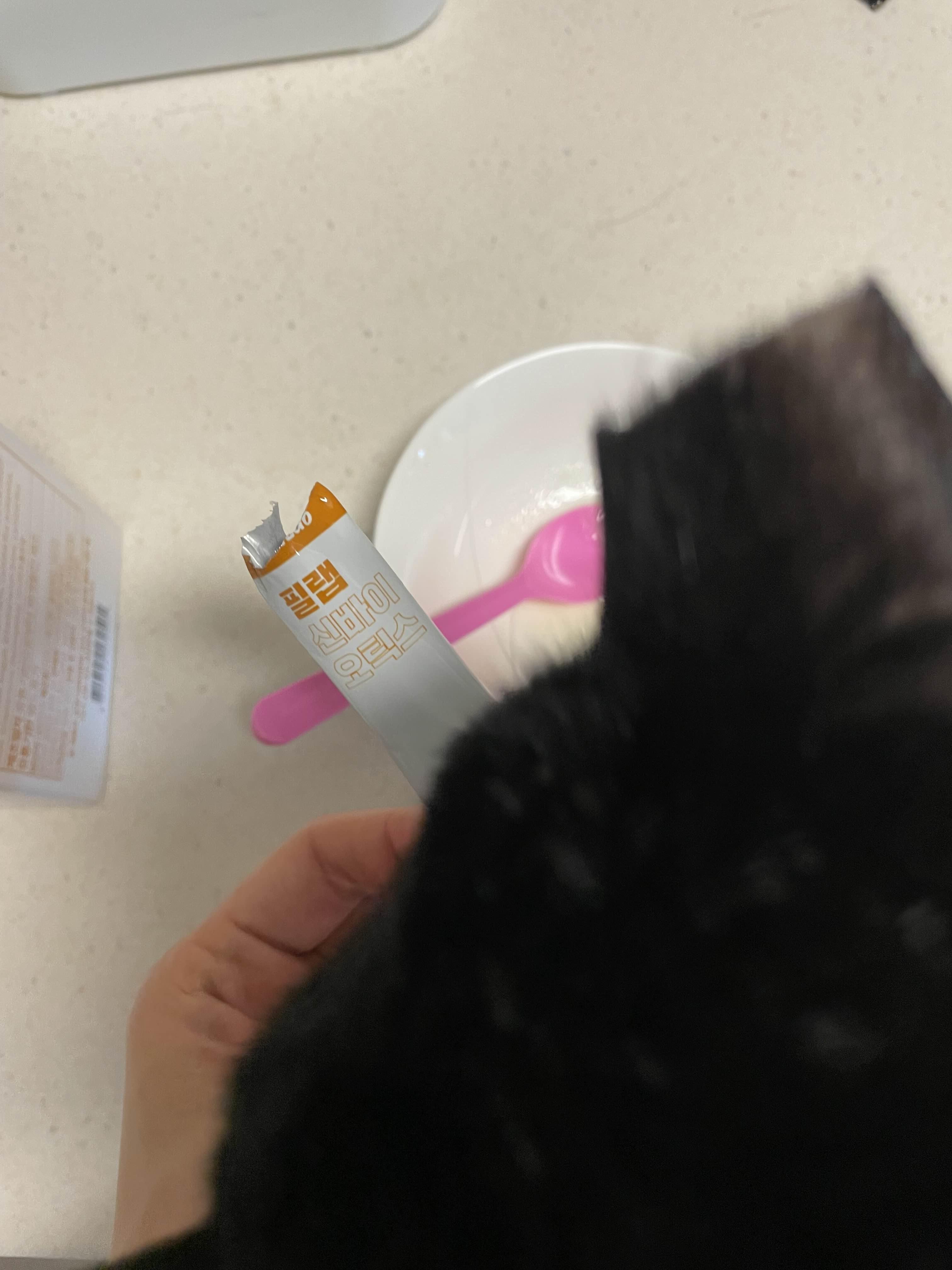 결국 간식에 타드렸다ㅎㅎㅎ 싹싹 긁어드신다. 다행히 간식이나 습식에 넣으면 크게 거슬리지 않나보다. 이전에 건사료랑 습식에 뿌려도 거절하던 깨비씌였는데 그래도 이건 먹어주니까 다행이다.